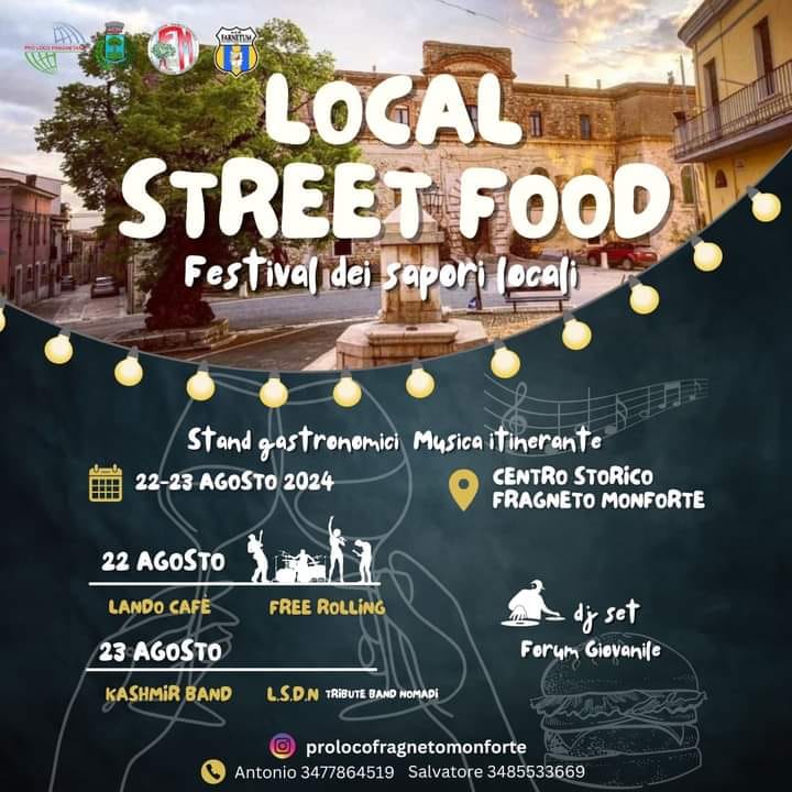Local Street Food admin 16 Agosto 202411 Aprile 2025 Eventi Vi aspettiamo al festival dei sapori locali il 22 e 23 agosto a Fragneto Monfortre